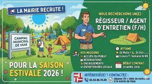 Contact : mairie de Vaas – 02.43.46.70.29 – déposer CV et lettre de motivation
