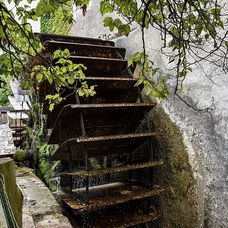 Venez au moulin de Rotrou, admirez la rivière, le barrage et surtout la grande roue à aubes qui entraîne toutes les machines permettant au grain de blé de devenir farine.